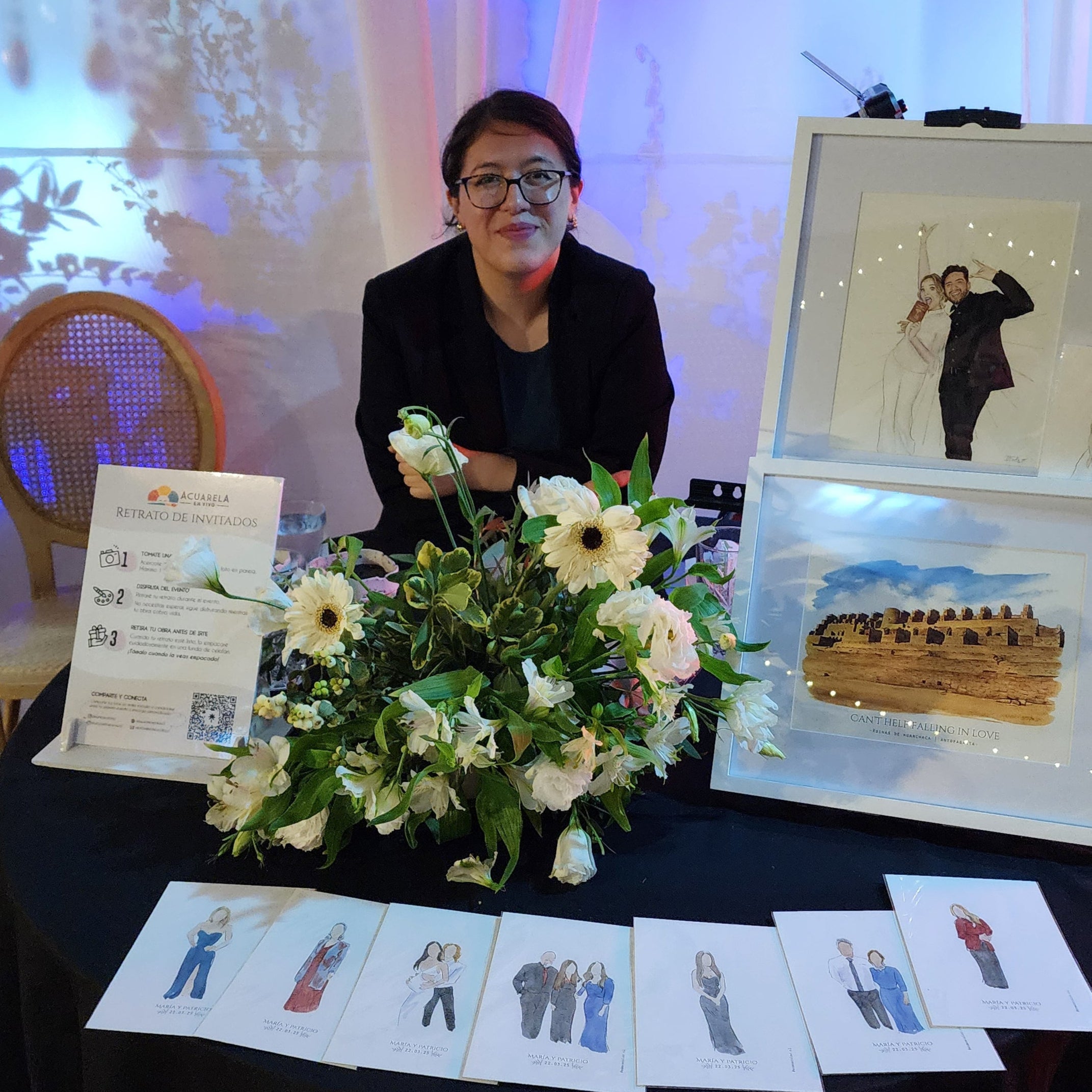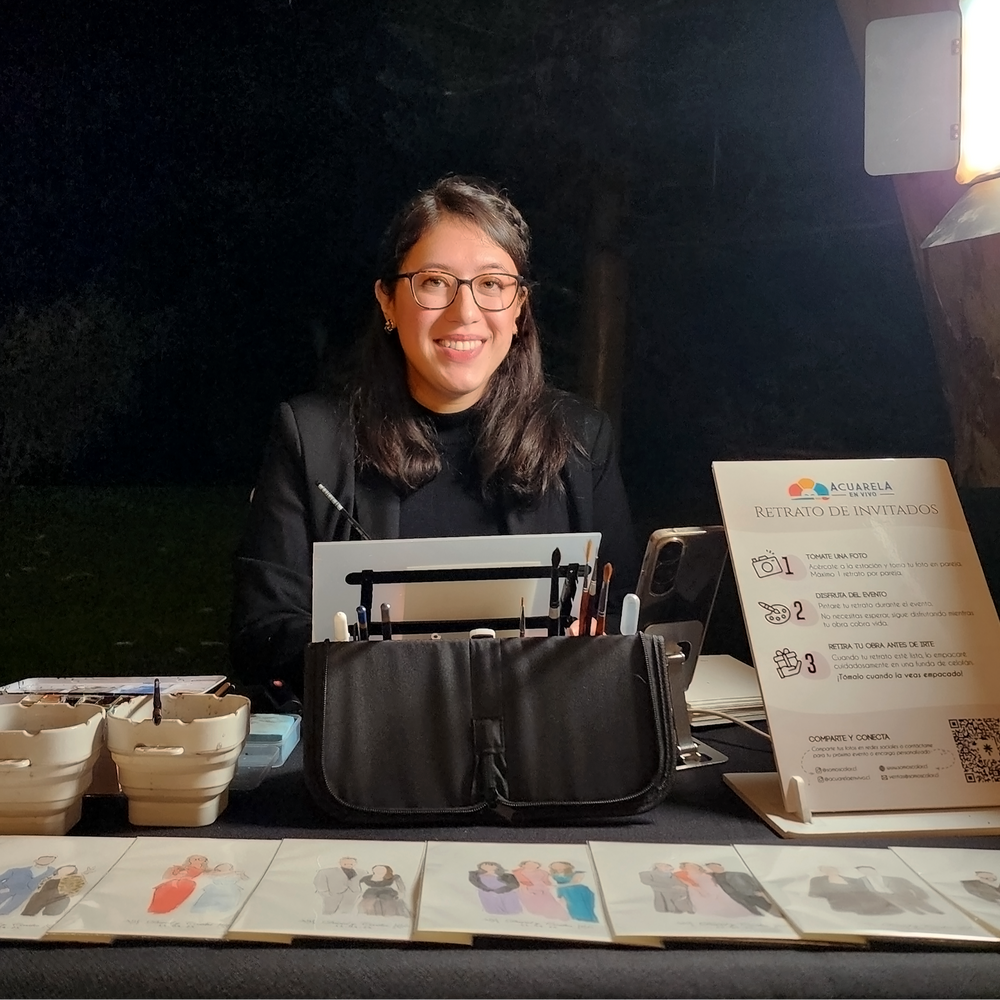 ¿Fotos? Eso lo hacen todos, pero un retrato en acuarela pintado en vivo... dejará a todos con la boca abierta.