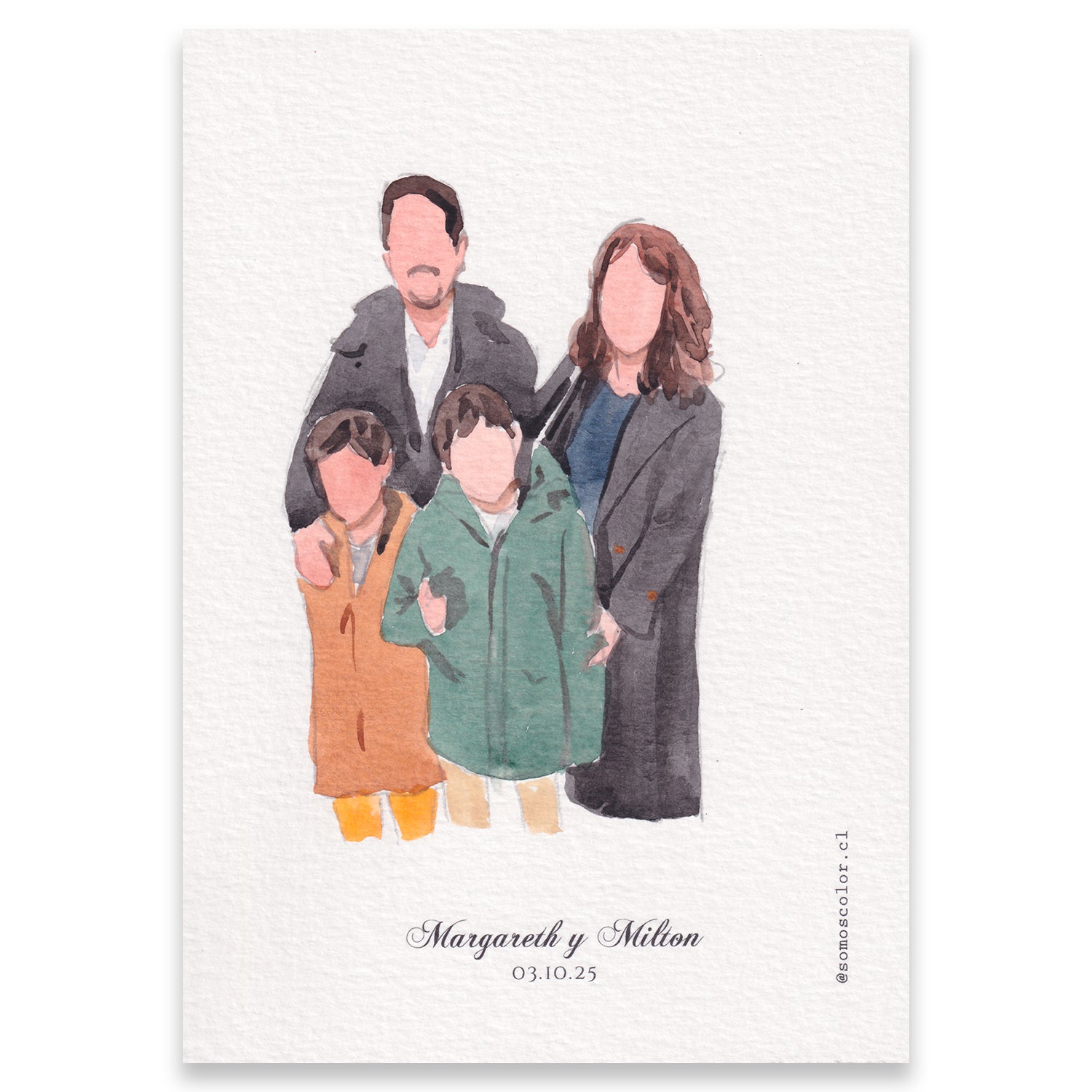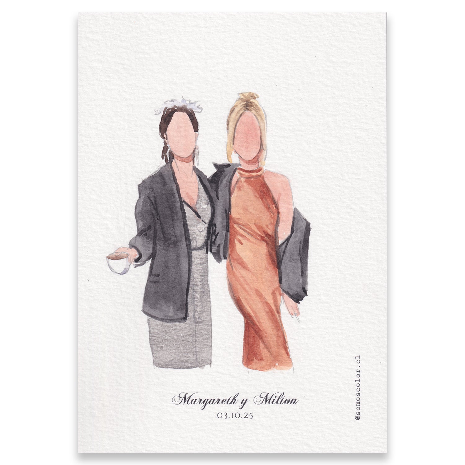 • Cada tarjeta es pintada cuidadosamente en mi taller, asegurando que los detalles reflejen la esencia de las personas retratadas y su vestuario.