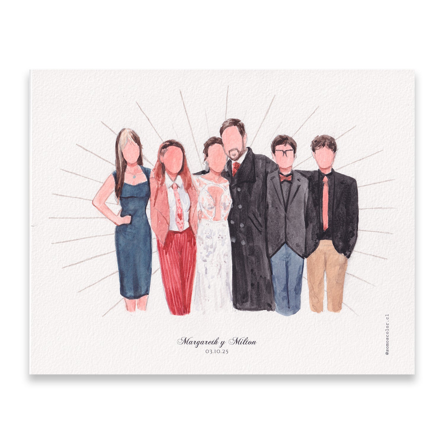 Normalmente pinto hasta 2 personas por ilustración, pero somos flexibles: si aparece un grupo de 3, podemos equilibrar. En lugar de hacer dos parejas, puedo hacer una ilustración de 3 personas y otra de 1 sola. De esa forma, aprovechamos al máximo el servicio.