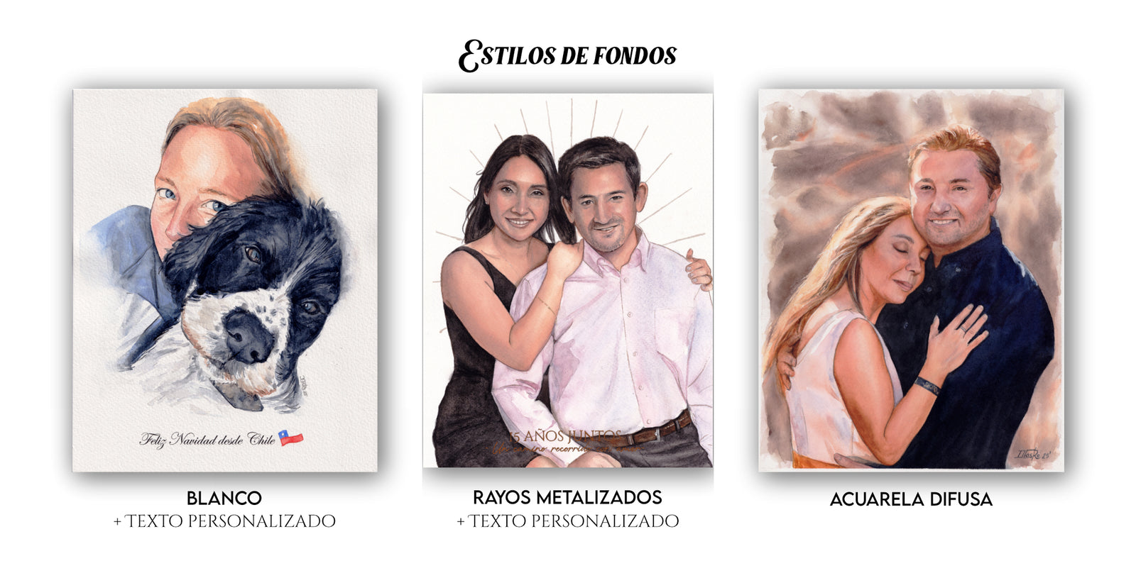 Un retrato que combina capas sutiles de acuarela y líneas con lápices de colores. Ideal para inmortalizar momentos especiales, retratar a la familia (o mascotas) y sorprender con un regalo lleno de emoción, calidez y memoria.